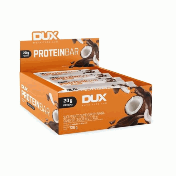 Dux Protein Bar Display (12 unid. 60g) – Sabor: Chocolate c/ Coco