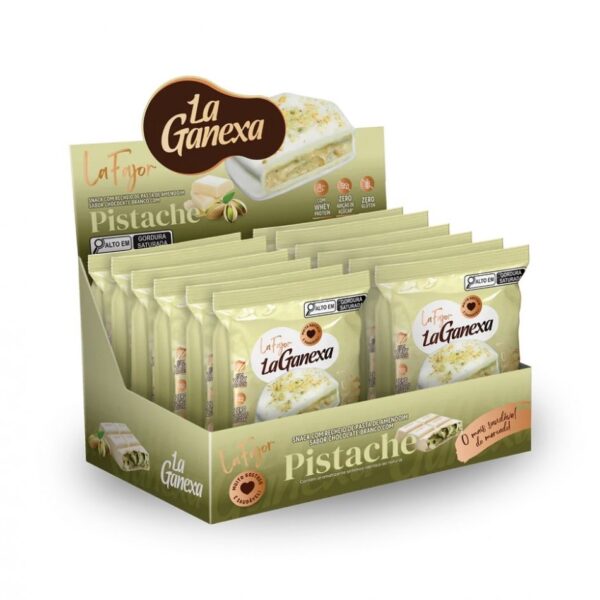 La Fajor La Ganexa Display (12 unid. 50g) – Sabor: Chocolate Branco c/ Pistache