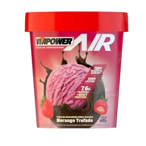 Pasta de Amendoim AIR Sabores Gourmet (600g) – Sabor: Sorvete Morango Trufado
