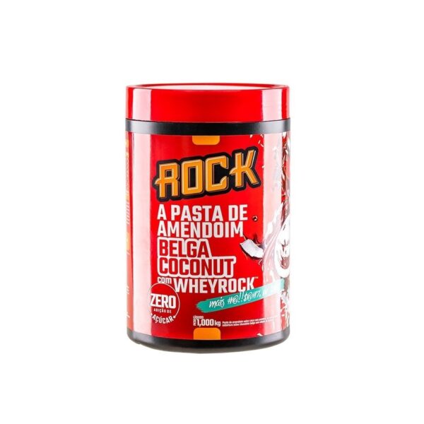 Pasta de Amendoim Whey Rock (1kg) – Sabor: Belga Coconut c/ Whey Rock.