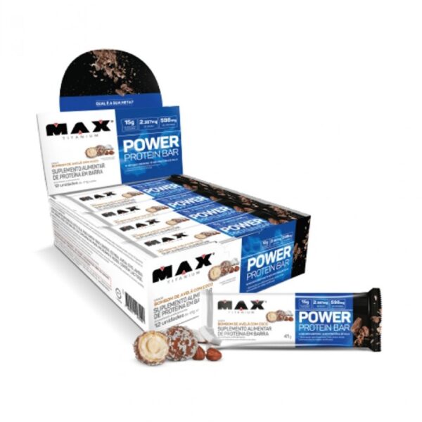Power Protein Bar Caixa com 12 Unidades (492g) – Sabor: Bombom de Avelã c/ Coco