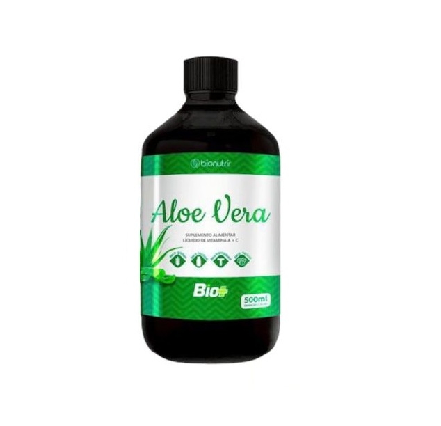 ALOE VERA (500ml) – BIONUTRIR Aloe vera (babosa) é muito conhecida por seu efeito cicatrizante, antitérmico e anti-inflamatório, além de ser ótima para hidratar cabelos e pele. Na versão Bionutrir, a Aloe Vera é um suplemento alimentar poderoso, com duas fontes de vitaminas: A e C. A vitamina A atua principalmente na visão, mas também possui um importante papel no funcionamento do sistema imunológico, na manutenção da saúde das mucosas, no crescimento e desenvolvimento. Já a Vitamina C é muito importante para o organismo e está relacionada a melhora da imunidade, contribui para a absorção de ferro, na produção de colágeno e combate ao envelhecimento. BENEFÍCIOS: – Possui Vitamina A e C;- Fortalece o sistema imune;- Zero Glúten, zero lactose, zero transgênico e zero açúcar. Embalagem disponível: frasco contendo suplemento. Peso líquido: 500ml.