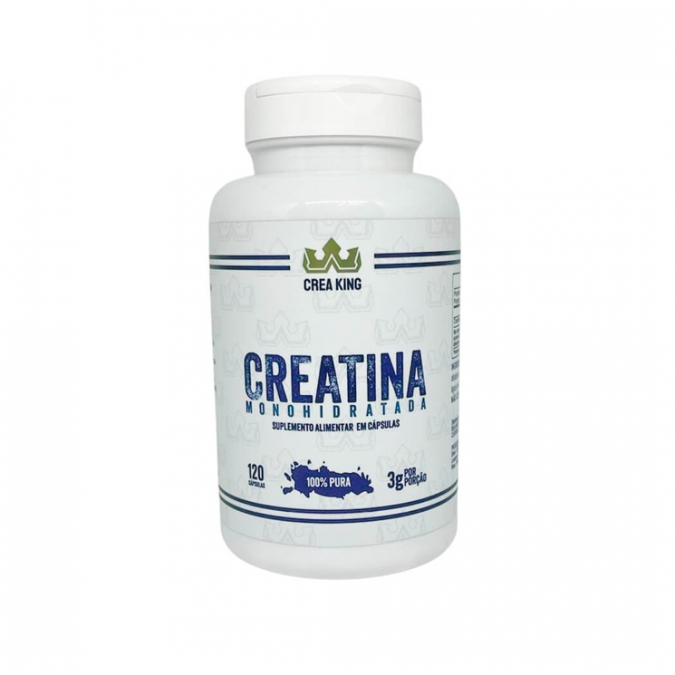 Creatina Monohidratada (120 caps) Creatina Monohidratada 120 Cápsulas da Crea King oferece praticidade e potência para quem busca uma suplementação eficiente para aumentar a força, a explosão muscular e o desempenho nos treinos. Em um formato fácil de consumir, esta creatina em cápsulas é ideal para incluir no dia a dia, garantindo a dose ideal sem necessidade de misturas. Benefícios da Creatina Monohidratada: Aumento de força e potência: A creatina é um dos suplementos mais comprovados para a melhora de desempenho em atividades de alta intensidade, contribuindo para uma regeneração mais rápida de energia (ATP).Ganho de massa muscular: Suporte ao aumento de volume muscular, ideal para quem busca hipertrofia e melhor desempenho.Praticidade em cápsulas: O formato em cápsulas facilita o consumo e a dosagem, ideal para quem tem uma rotina agitada.