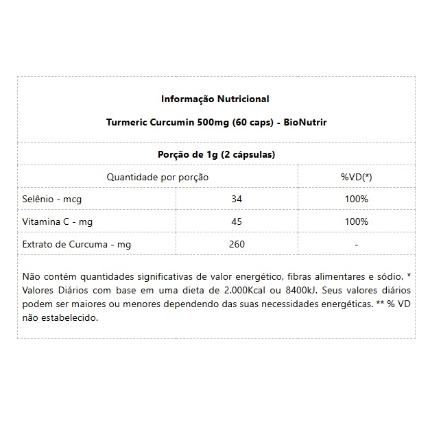 Turmeric Curcumin 500mg (60 caps) – Padrão: Único